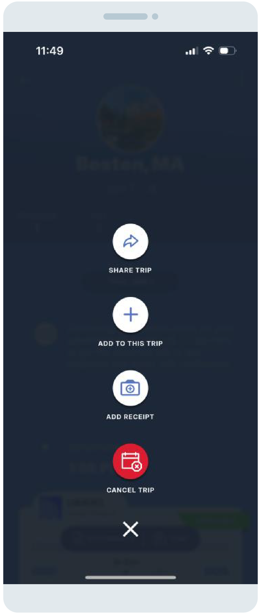 Det är nu enklare än någonsin att boka i TripSource-appen! Använd den nya ”Boka”-knappen på startskärmen för att komma igång. Tryck på knappen och välj hur du vill boka – med TripSource eller utanför TripSource. Om du väljer att boka med TripSource kommer du att se segmenten som är konfigurerade för ditt program. Om du väljer att boka utanför TripSource, trycker du på en segmentikon för att lämna TripSource och gå direkt till ditt företags föredragna bokningslösning.
